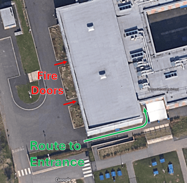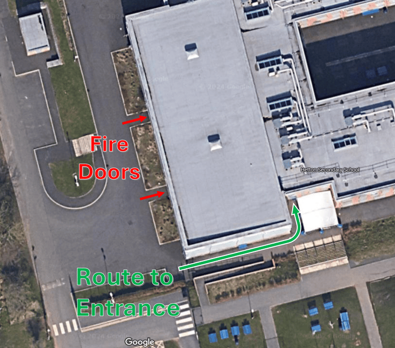 Hey everyone! We have an important update regarding how we access the sports hall. After some issues during the recent cold snap, we've been asked to stop using the fire doors for entry and exit from the hall. Instead, we need to use the main sports hall entrance going forward. You can find the exact location of the proper entry route on this map...