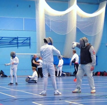 We have split the club into 3 different training 'wings' (keeping the phoenix theme!) for our class lessons and footwork sessions (Yellow, Blue and Red.) The groups will work with a coach for a block of 4 weeks and then things will be moved about... Coaches will swap groups and some people will migrate from wing to wing. Once the group lessons are finished, the rest of the session will be "free fencing" as normal and the usual etiquette of "never refuse a request to fence" without a very good reason still holds.